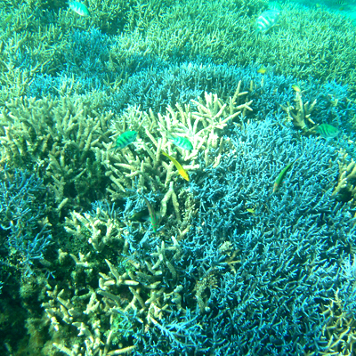 上空から見るマリンブルーの格別な色、海に潜ってキラキラ珊瑚とカラフルなお魚たちの
